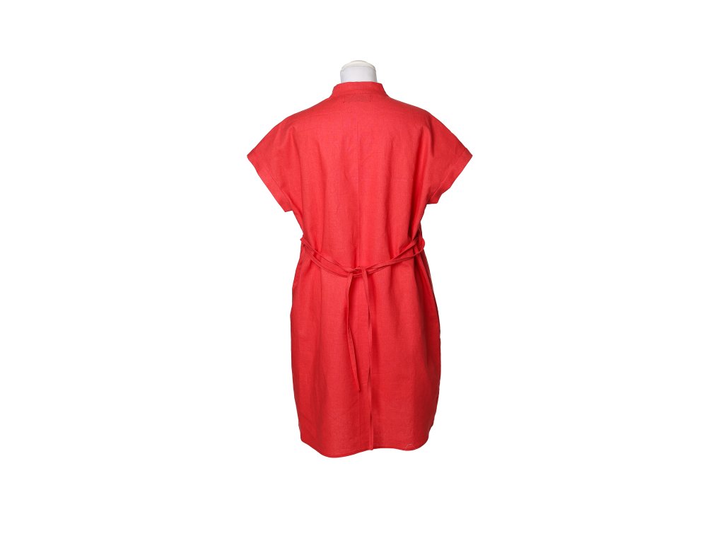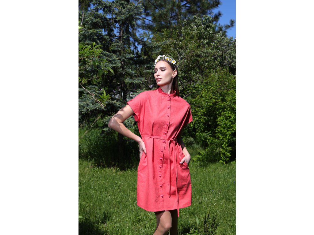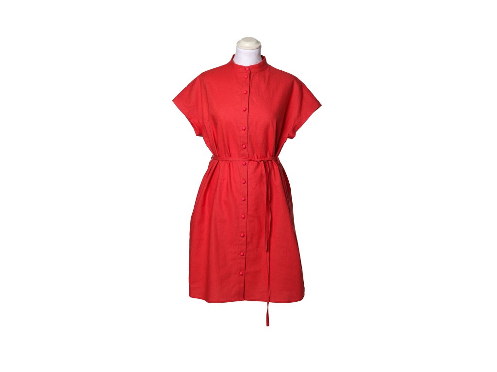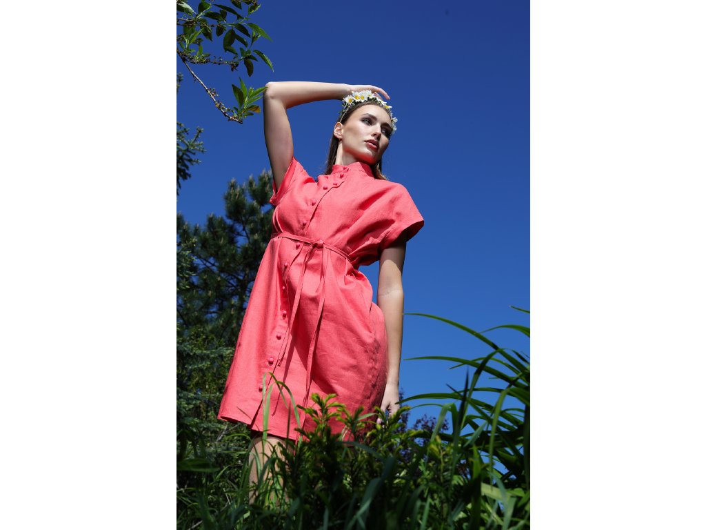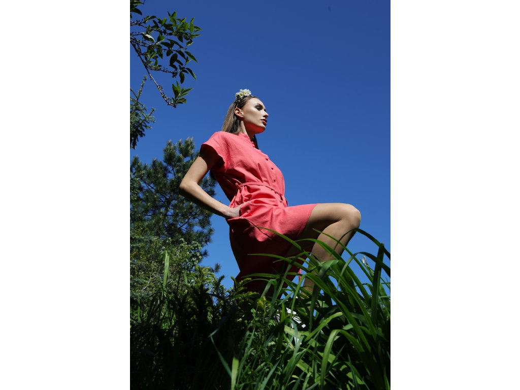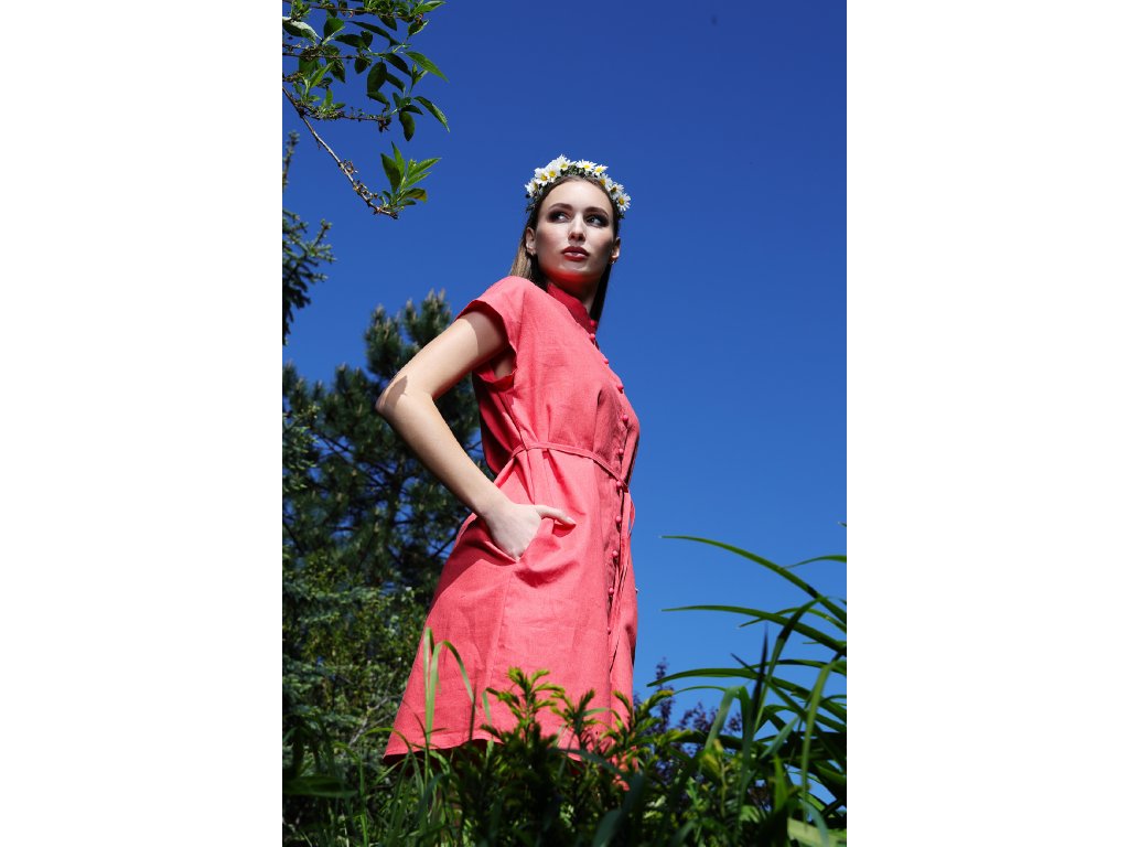 Svieže, pohodlné a nadčasové – presne také sú tieto korálovo-červené ľanové košeľové šaty s tenkým opaskom. Vyrobené z kvalitného ľanu, ktorý dýcha, a doplnené o jemne stojačikový golier, gombíky v rovnakej farbe a praktické vrecká. Ideálne na letné dni, keď chceš byť štýlová a zároveň sa cítiť prirodzene a pohodlne.