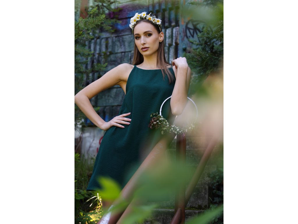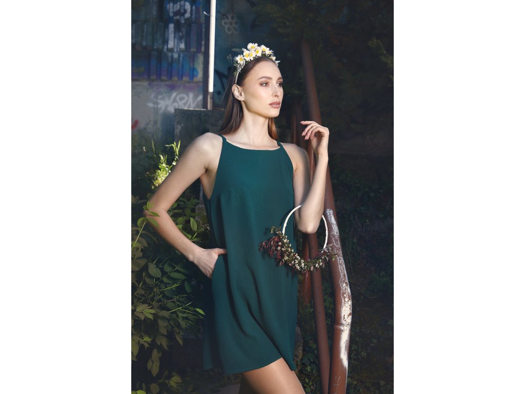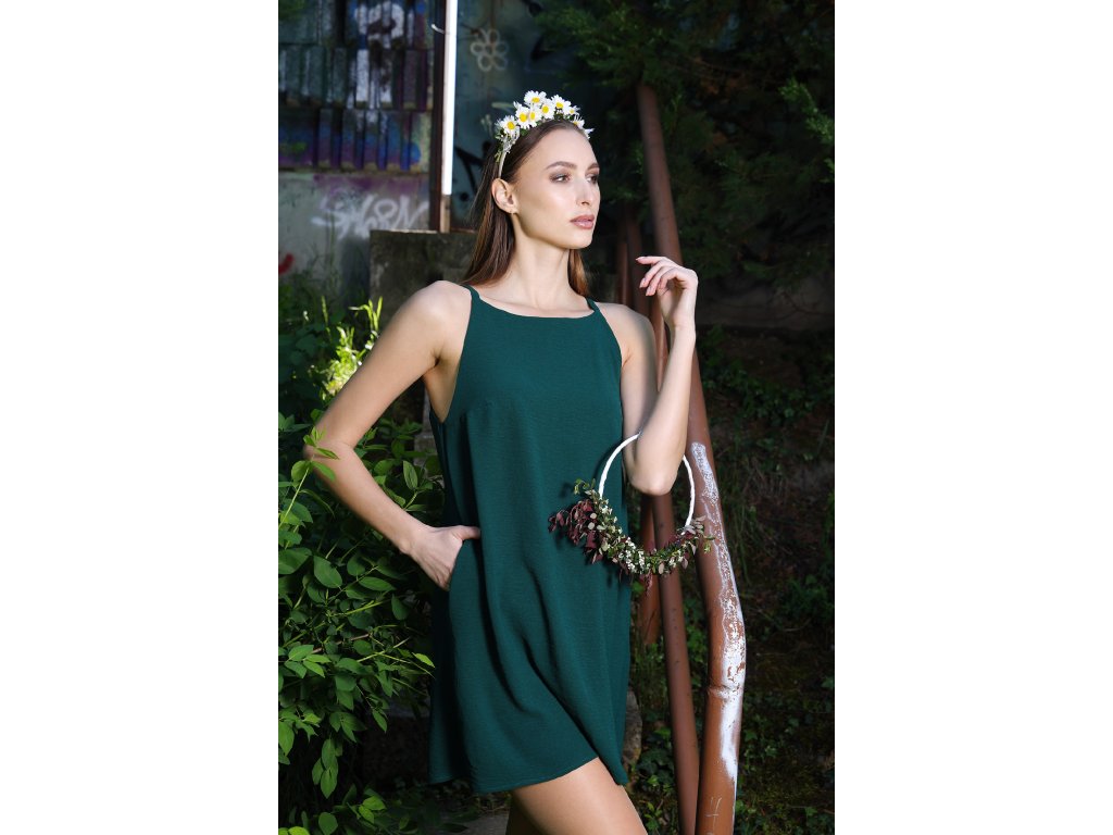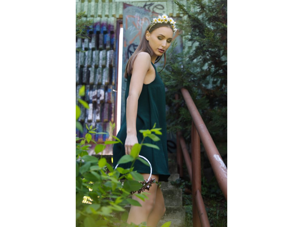 Tmavozelené ľahké šaty na ramienka z viskózy.Zahaľ sa do prirodzenej elegancie s týmito vzdušnými viskózovými šatami na ramienka. Ich tmavozelený odtieň dokonale ladí s prírodným prostredím a vďaka voľnému strihu ponúkajú maximálne pohodlie počas horúcich dní. Vhodné na bežné nosenie, festivaly aj letné večery.